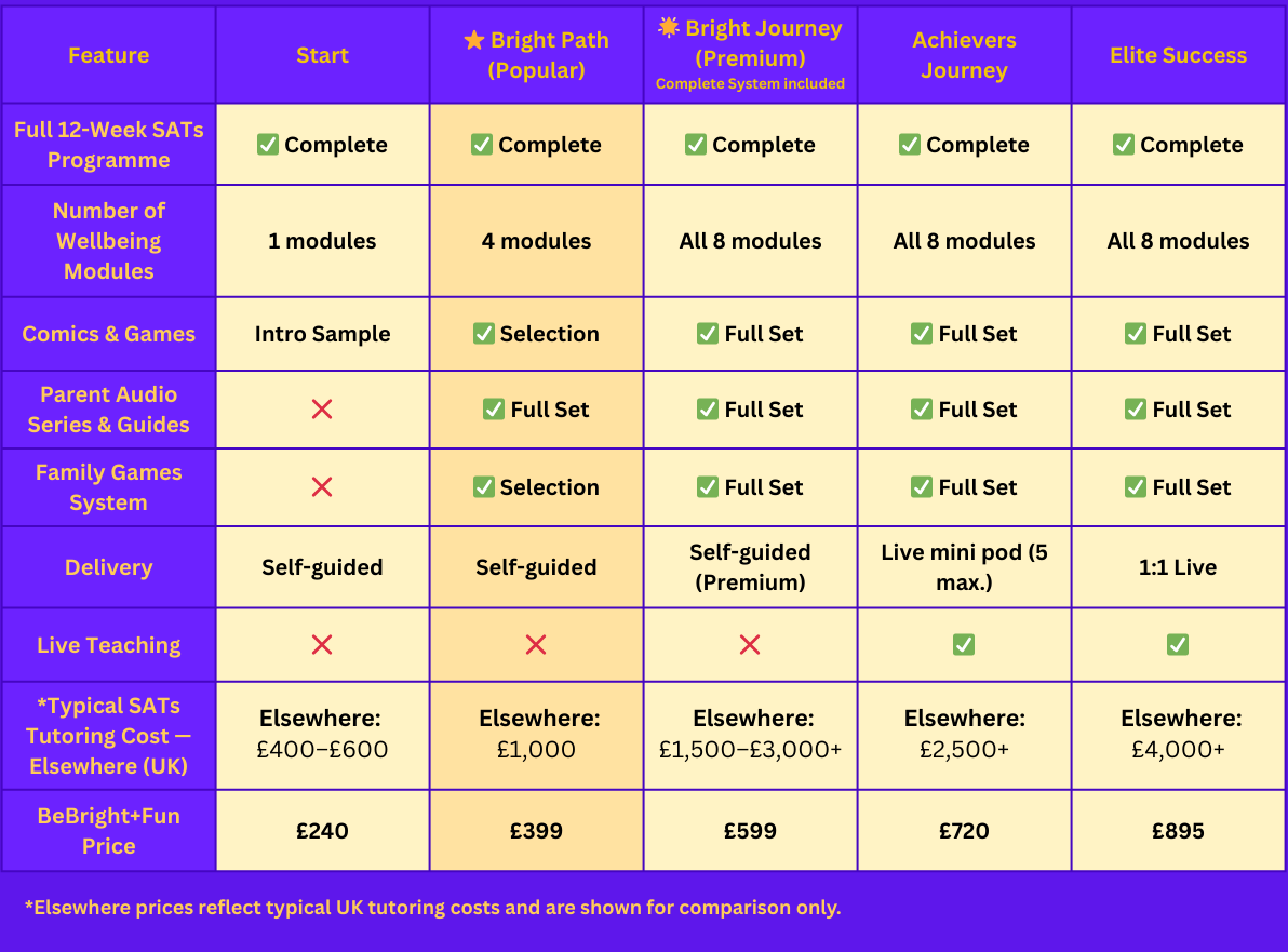 Explore Guided Support (Mini Pod & 1:1)A fun, stress-free system for SATs success supporting the whole family and building lifelong confidence to unlock your childâs brightest potential.Â
